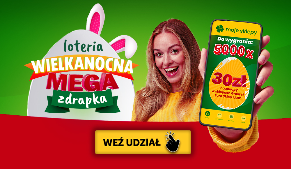 Zgarnij 30 zł na zakupy w naszych sklepach! Ruszyła wielkanocna loteria MEGA Zdrapka! Jak wziąć udział w loterii? Zrób zakupy w sklepach Groszek, ABC lub Euro Sklep za min. 25…